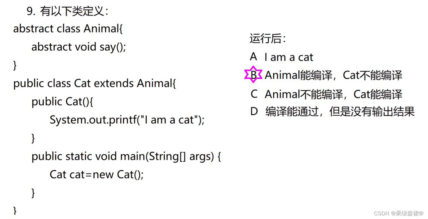 (子类不是抽象类时)抽象类的子类必须重写所有的抽象方法,Cat没有重写父类的抽象方法