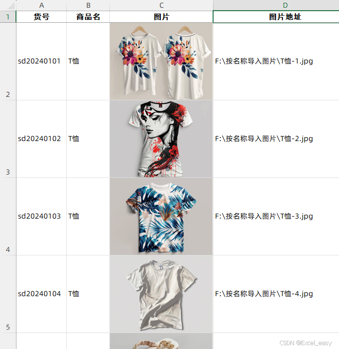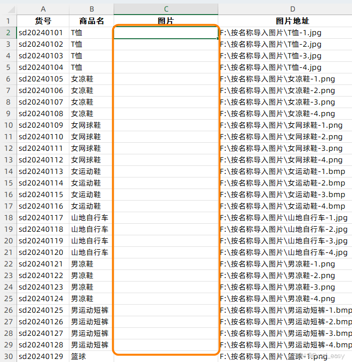 有这样一份商品清单和每个商品的图片,现在需要将商品对应的图片插入到商品清单名称对应的单元格中,这样的工作如果逐个手动插入图片对齐,10张图片就够你折腾半天了,更何况我们各行各业在实际的应用中商品或产品可能都是成百上千的,如何快速完成像这样根据名称插入图片的工作呢?