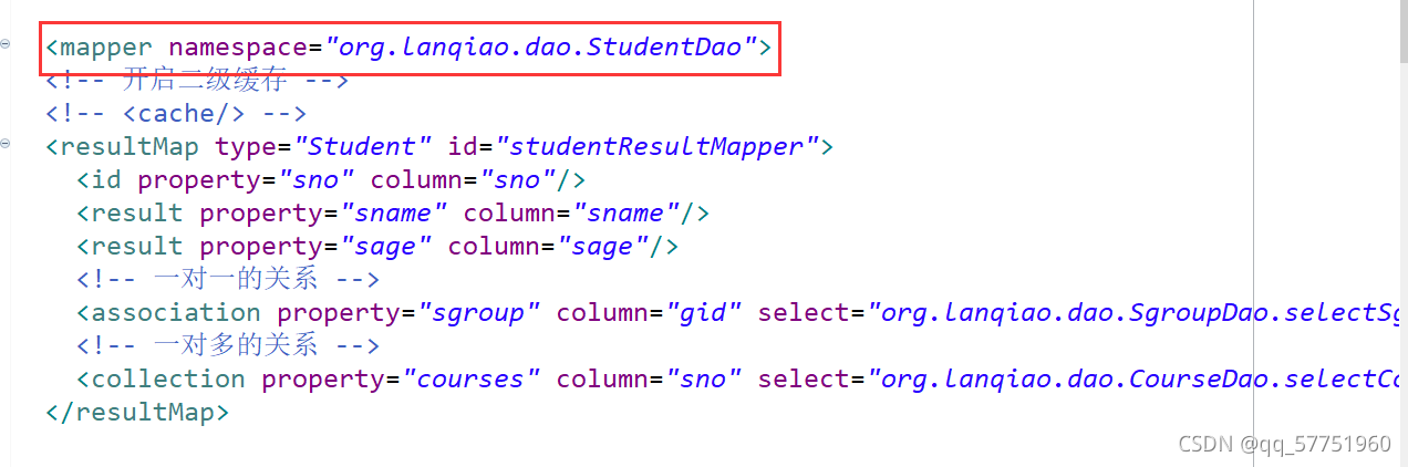 因为当我们设置一个xml文件中mapper属性,如果mapper属性下面配置了namesapce值,那么你执行的增,删,改和查询所使用的id就是唯一的,不能重复。