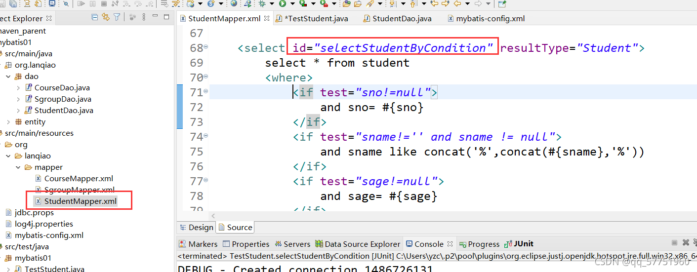 一般情况下我们是把Dao接口的方法名作为id,如果你在xml映射文件中使用了重载,那么我们只会使用相同的id,所以就会报错。错误如下图:说"ArgumentException:映射语句集合已包含org.lanqiao.dao.StudentDao.insertStudent的值。"