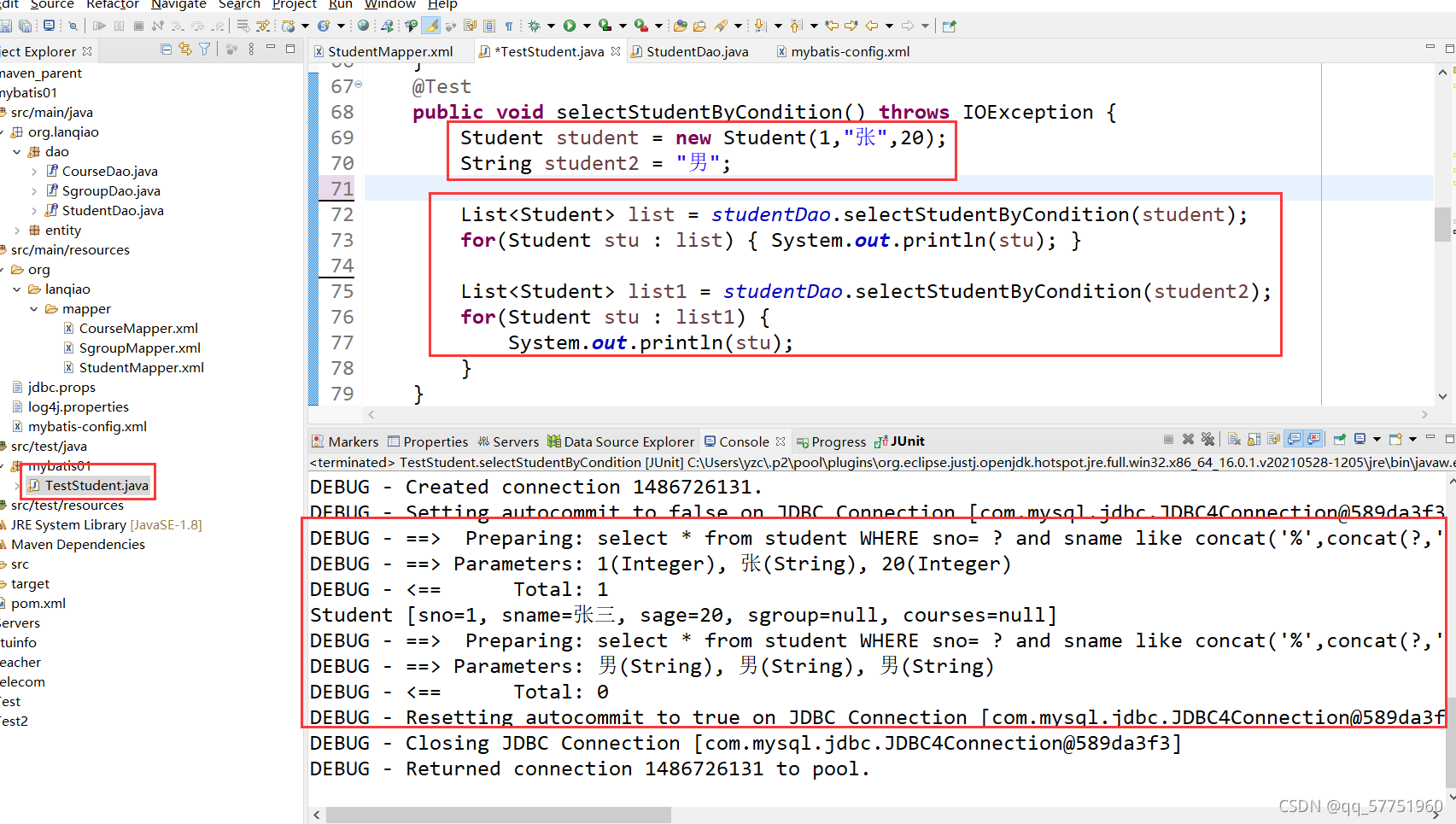 因为我数据库没有 男 所以查询不出来,我只是为了测试Dao层里面是可以重载的。