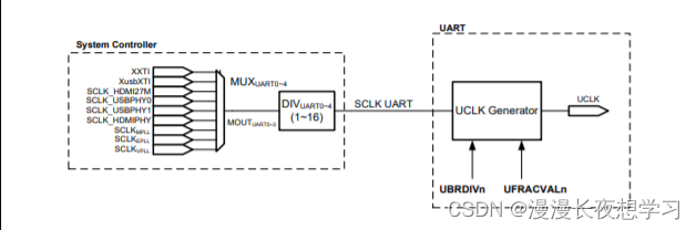 UART使用SCLK_UART 时钟,来自时钟控制器。