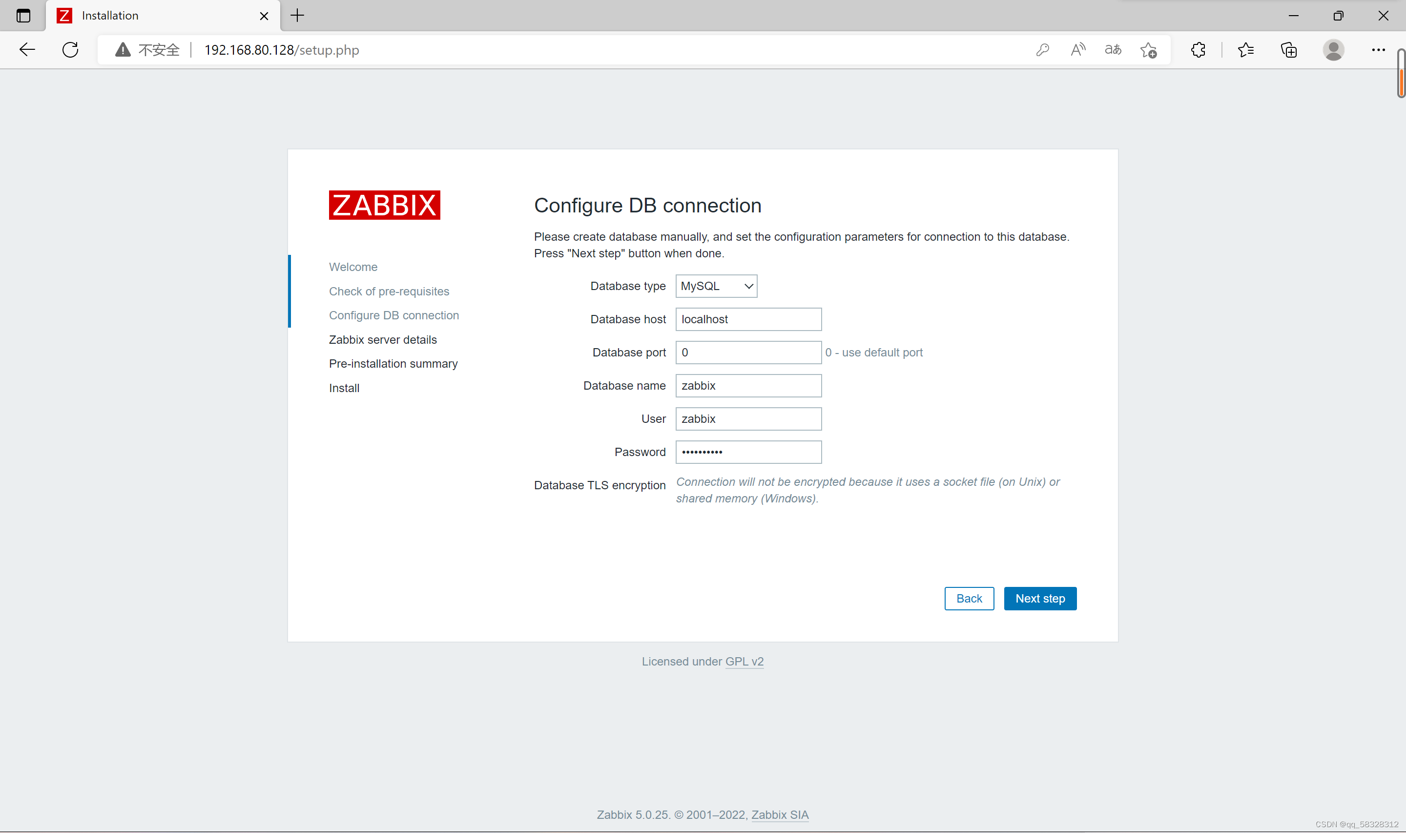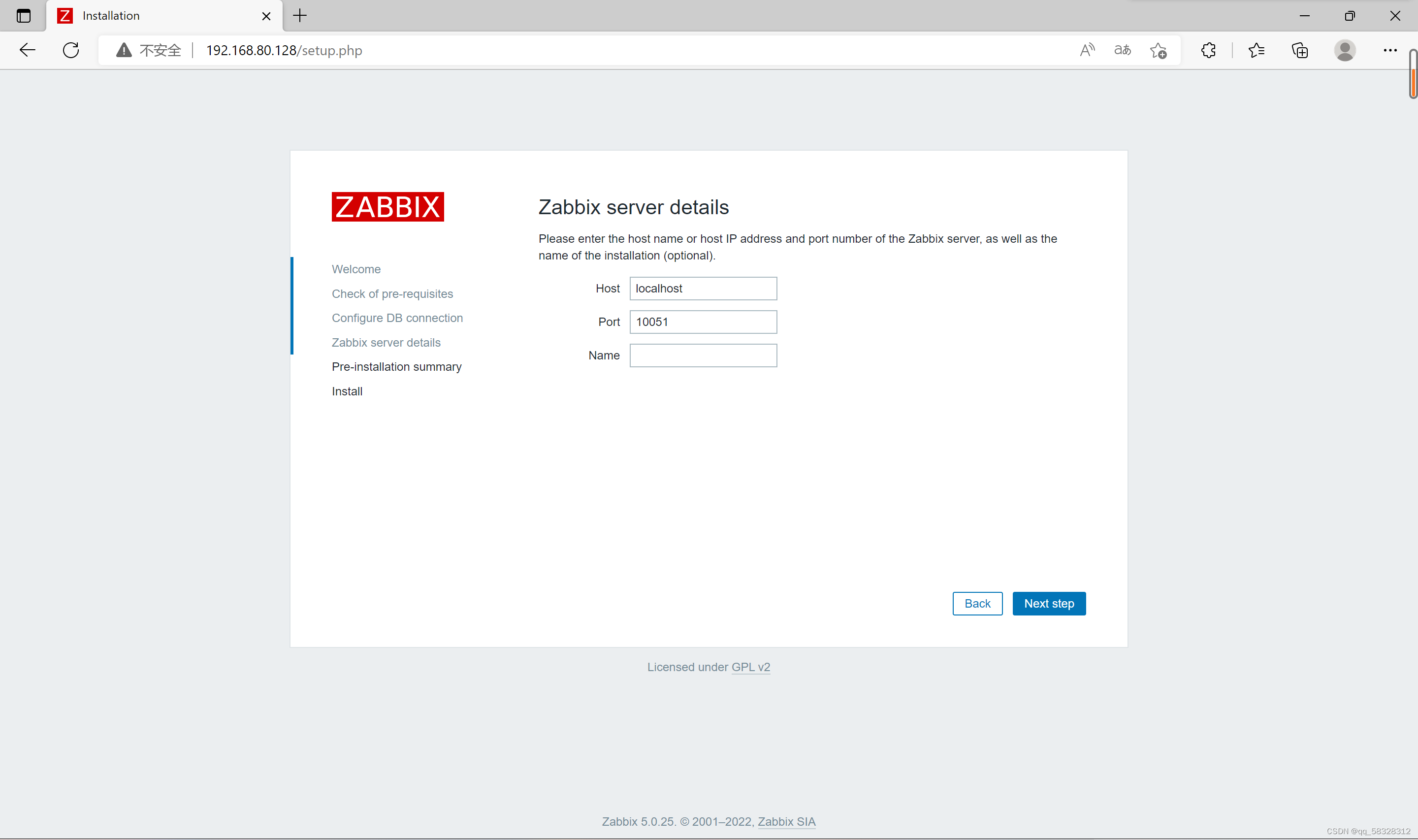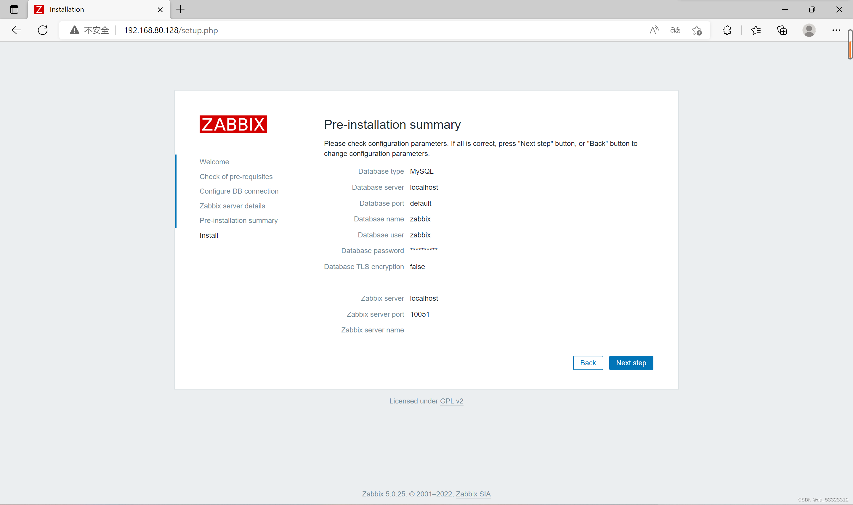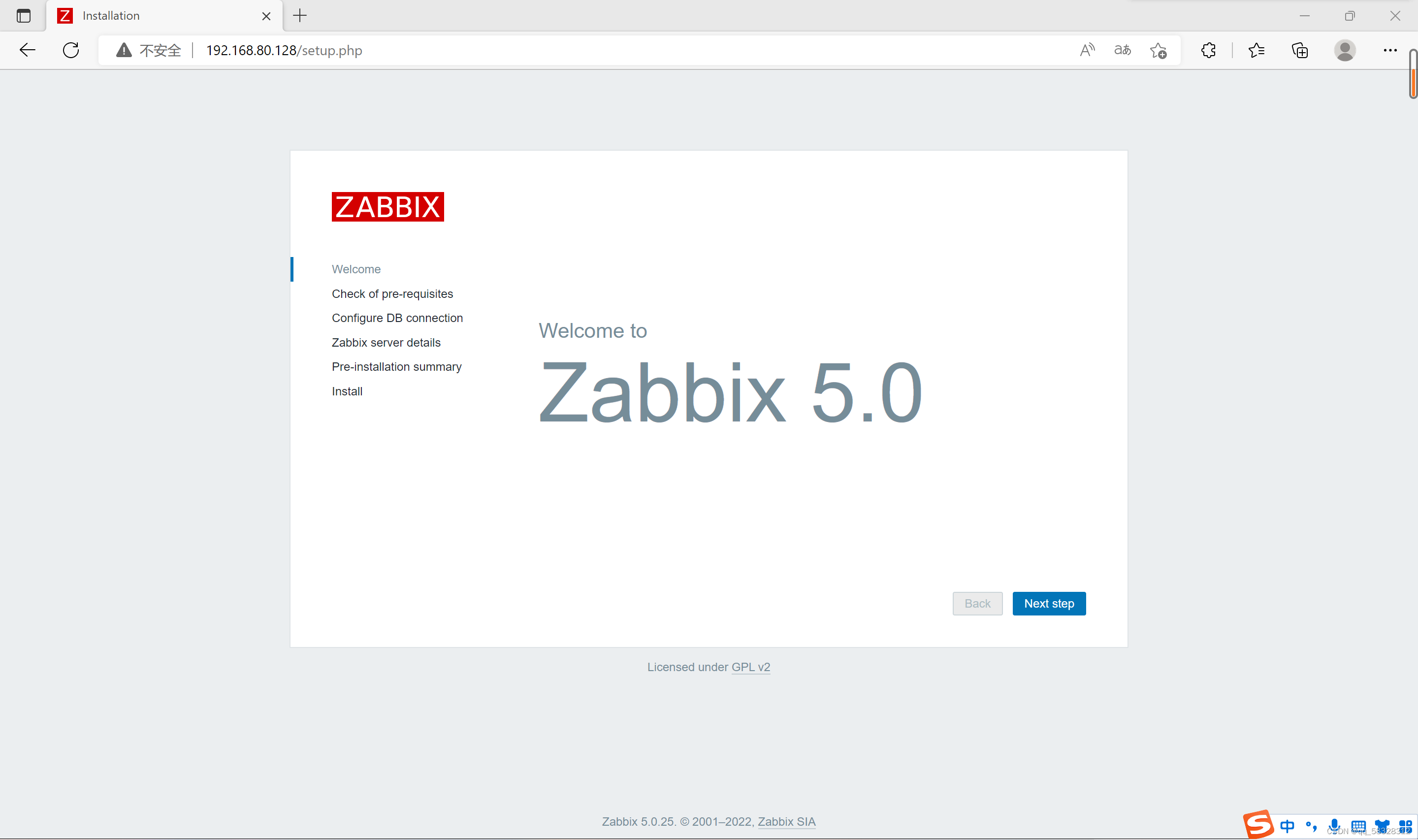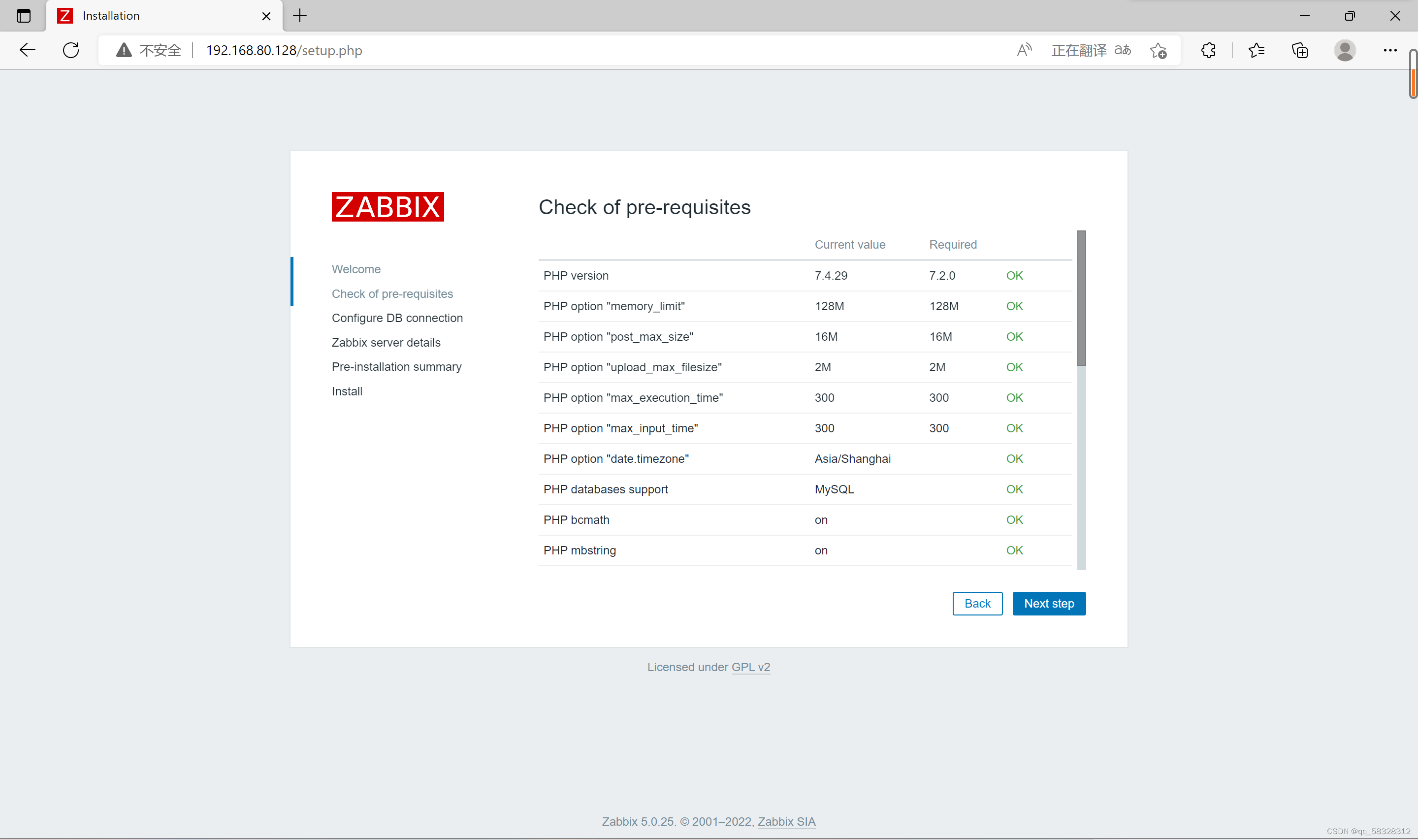 此时在浏览器使用ip访问即可看到zabbix安装页面