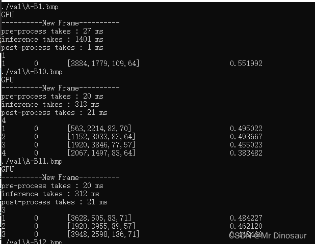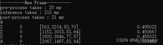 下面的4代表瑕疵数量,第一列是瑕疵ID,后面是瑕疵类别、坐标、置信度