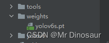 创建一个weights文件夹,将在官网下载好的yolov6s.pt模型放进去
