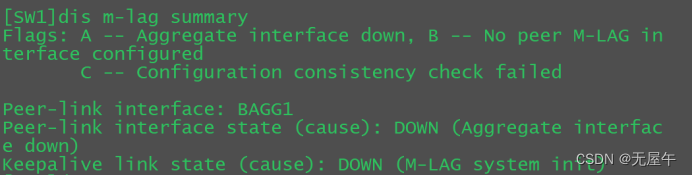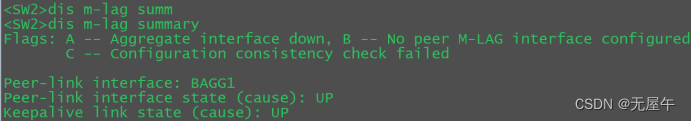 步骤 7:此时在 SW1 和 SW2 上可以查看到 M-LAG 系统已经建立