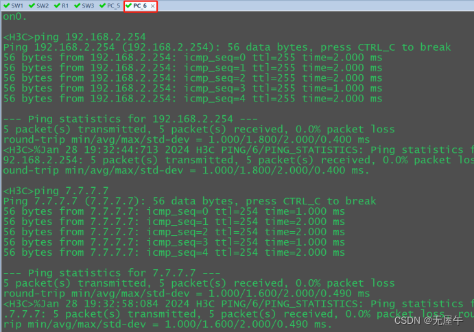 8、效果测试:在 PC 上测试能 Ping 通网关和 R1