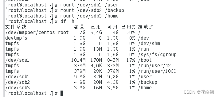 服务器现需新建一块20GB的硬盘,需要对新增的硬盘进行分区管理、分区方案为/user目录所在分区10GB,/backup目录所在的分区5GB,/home目录所在分区5GB