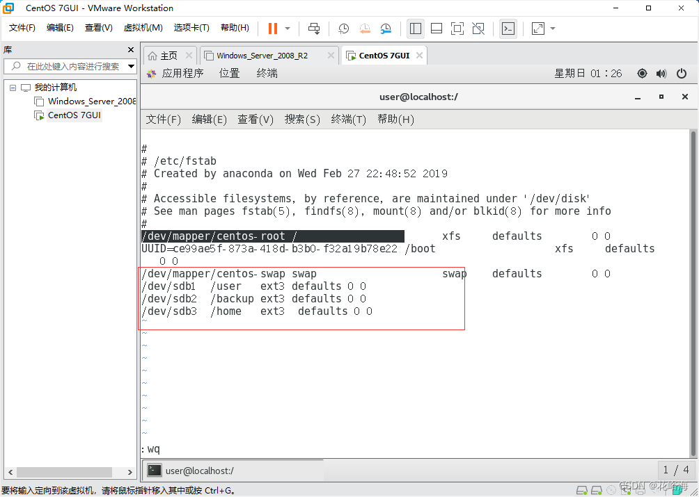 步骤5 自动挂载 vi /etc/fstab