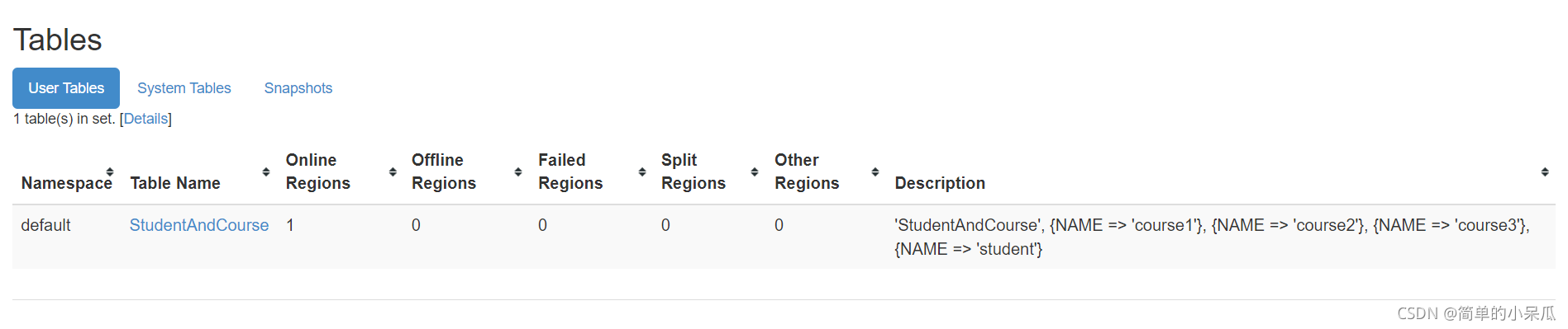 本文档详细介绍了如何启动Hadoop的HDFS和HBase,接着通过HBase shell创建名为'StudentAndCourse'的表,并插入三个学生(2015001, 2015002, 2015003)的详细信息,包括姓名、性别、年龄、课程及成绩。之后展示了如何使用scan命令查看表中的数据,并提示可以在Web界面中查看。最后,演示了如何退出HBase shell以及停止HDFS和HBase服务。