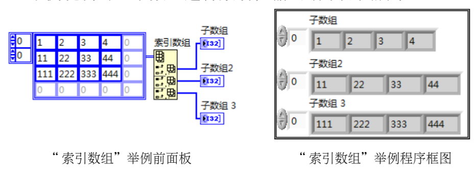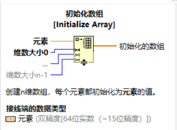 数组是将一系列、同一类型的数据组合到一起。在LabVIEW 中,数组可以是字符串类型、数值型或者布尔型等多种数据类型中的同类数据的集合。但不能创建以数组为元素的数组,也不能创建图标和图形数组。