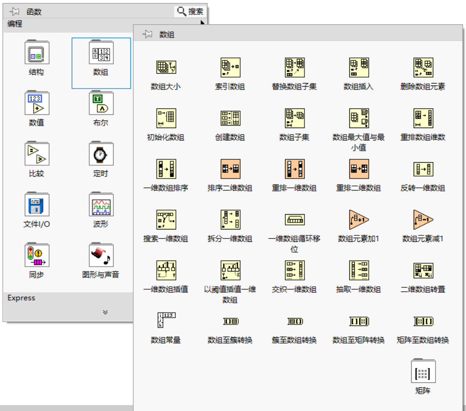 可以看到LabVIEW中关于数组的相关函数有非常多。