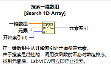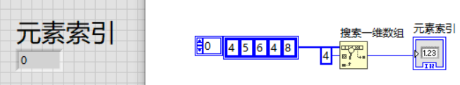 可以看到,当有重复元素时,根据“开始索引”端口的数值为下标进行查找,并输出查找到的元素所在下标。未对“开始索引”赋值时,默认从0开始。若数组中不存在我们要查找的元素,默认输出-1。