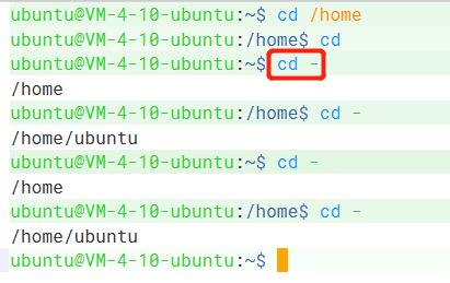 也可以通过 cd ~ 命令回家。