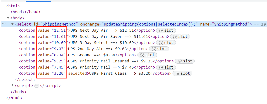 <option value="7.45">USPS Priority Mail ==> $7.45</option>