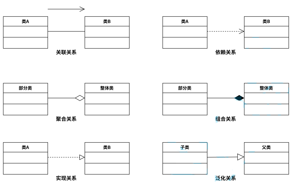 - 关系:UML用关系把各个事物结合在一起,主要的关系有: 依赖(dependency)、关联association)、泛化(generalization)、实现(realization);