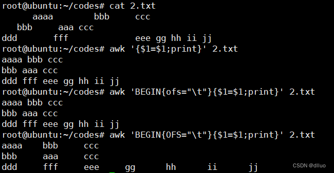 awk '{$1=$1;print}' 2.txt:这是awk的脚本部分,用来对输入进行处理。-
