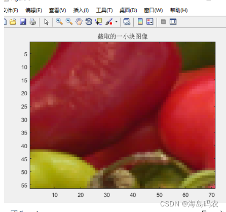 image(im),axis on,colormap(gray(256)),title('截取的一小块图像');