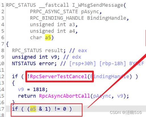 主要原理:获取 RpcServerTestCancel 函数地址,修改其指令字节,使其返回 NULL,即可使得调用取消。如图所示: