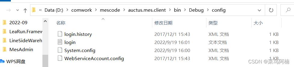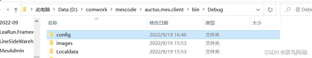 打开当前文件路径找到bin目录>Debug>缺少config配置文件,因为框架是公司买的,所以这个config文件VS无法生成(平时自己创建项目config文件是自动生成的,一般不用管),然后原来前辈也没把这个文件上传至云端,所以我拉取代码的时候造成了这个文件缺少,导致错误。
