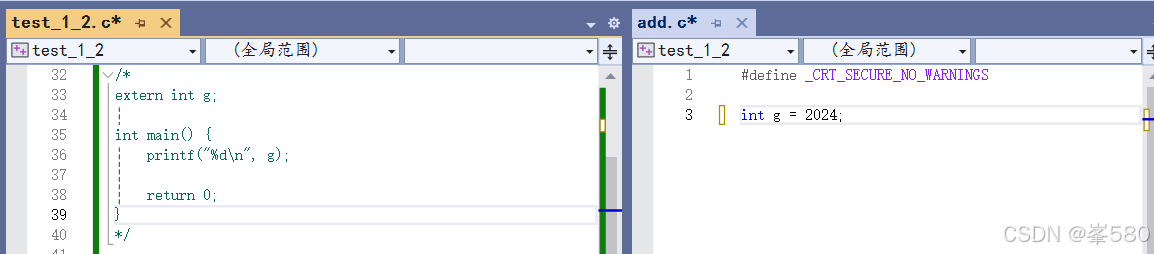 创建源文件add,在源文件add中 定义整型变量g(全局变量),如图