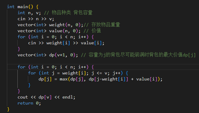 和完全背包不同的是当我们可以重复放同一个物品时,在上述两种情况的前提下这就是三种方式,这种方式是通过更新背包的顺序来处理的:
