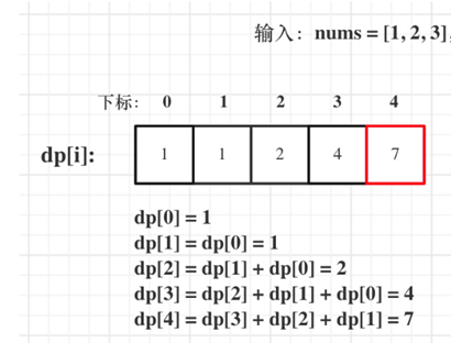 dp[4] = dp[4-nums[0]] + dp[4-nums[1]] + dp[4-nums[2];