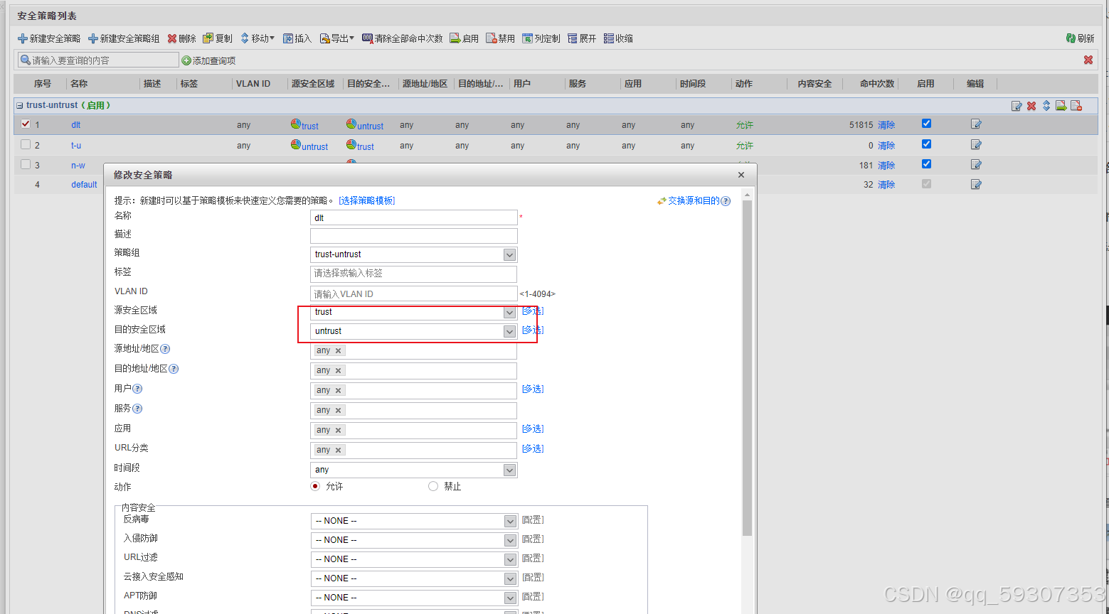 - 注意区分trust、untrust区别