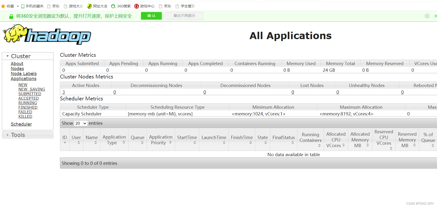 查看 http://Hadoop103:8088 页面,点击 History,查看历史页面