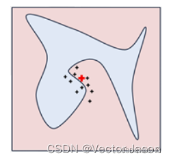 选取关注的样本点,如图粗线的红色十字叉为关注的样本点X;