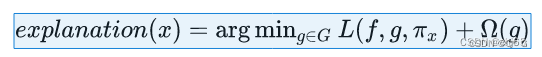 对于实例x的解释模型g,我们通过最小化损失函数来比较模型g和原模型f的近似性,其中,代表了解释模型g的模型复杂度,G表示所有可能的解释模型(例如我们想用线性模型解释,则G表示所有的线性模型),定义了x的邻域。我们通过最小化L使得模型f变得可解释。其中,模型g,邻域范围大小,模型复杂度均需要定义。