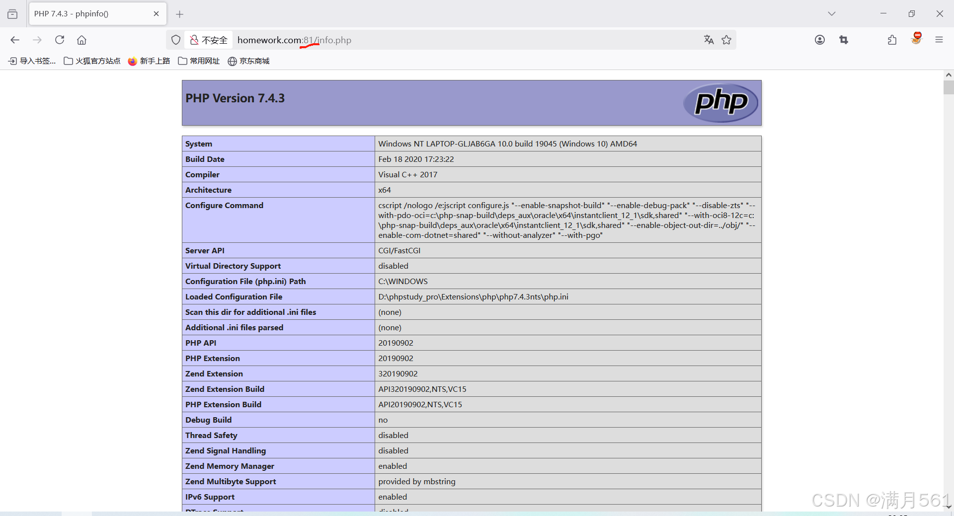 1、安装最新版phpstudy集成工具并创建一个网站,编写php代码输出网站信息(phpinfo)