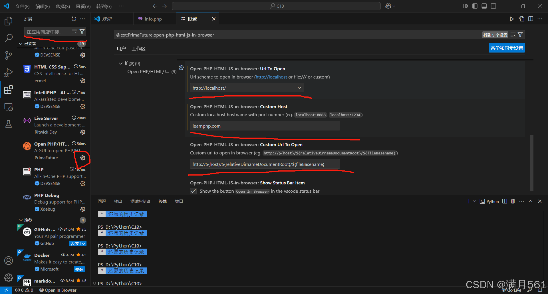 2、安装vscode,并安装php开发插件、汉化插件、xdebug等插件