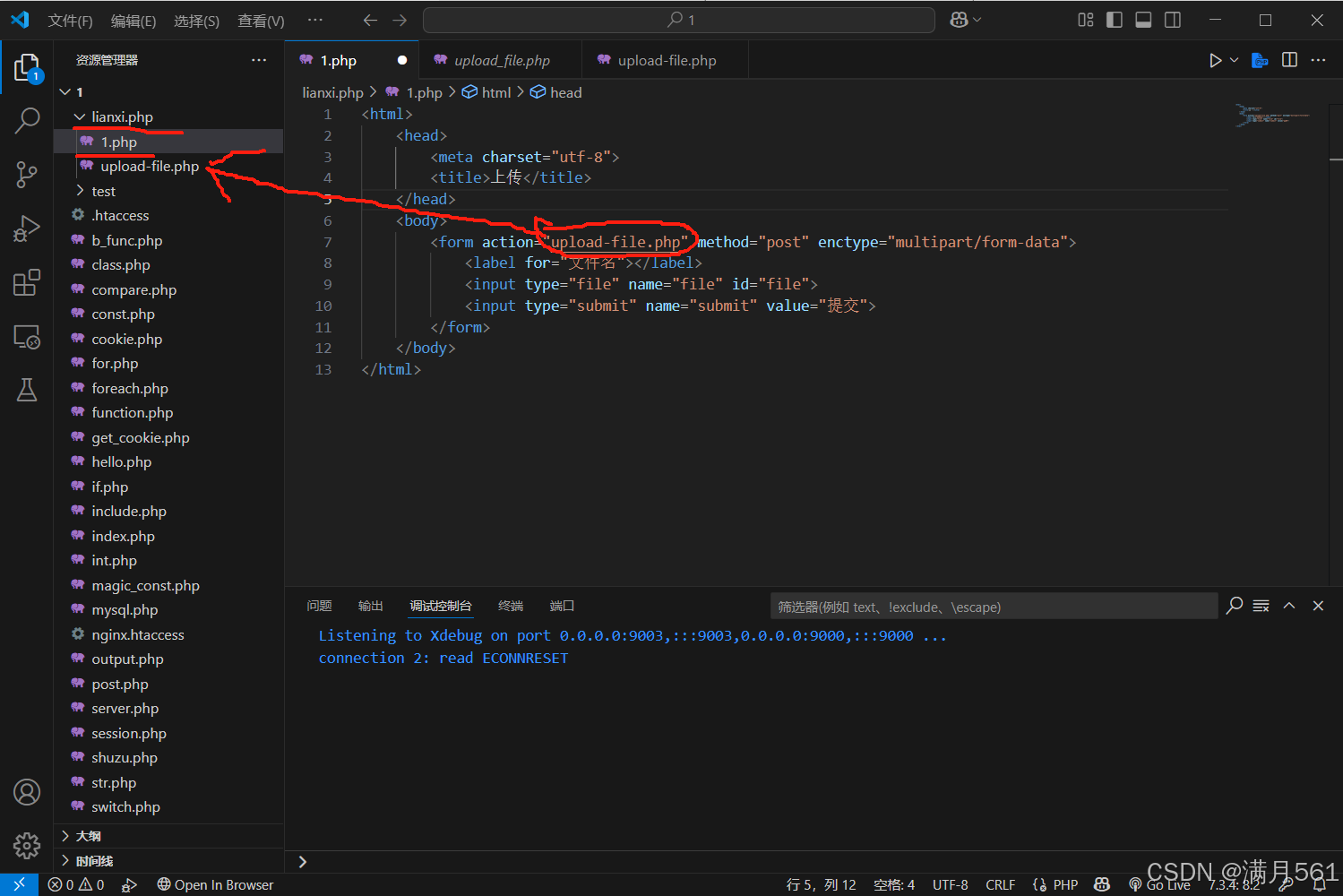 创建一个目录,在目录下新建任意文件,写好上传的代码,注意上传的php文件位置要和另一个接受的文件名称保持一致
