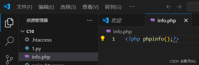 打开vscode,在创建好的网站目录下创建一个info.php的文件,输入phpinfo()