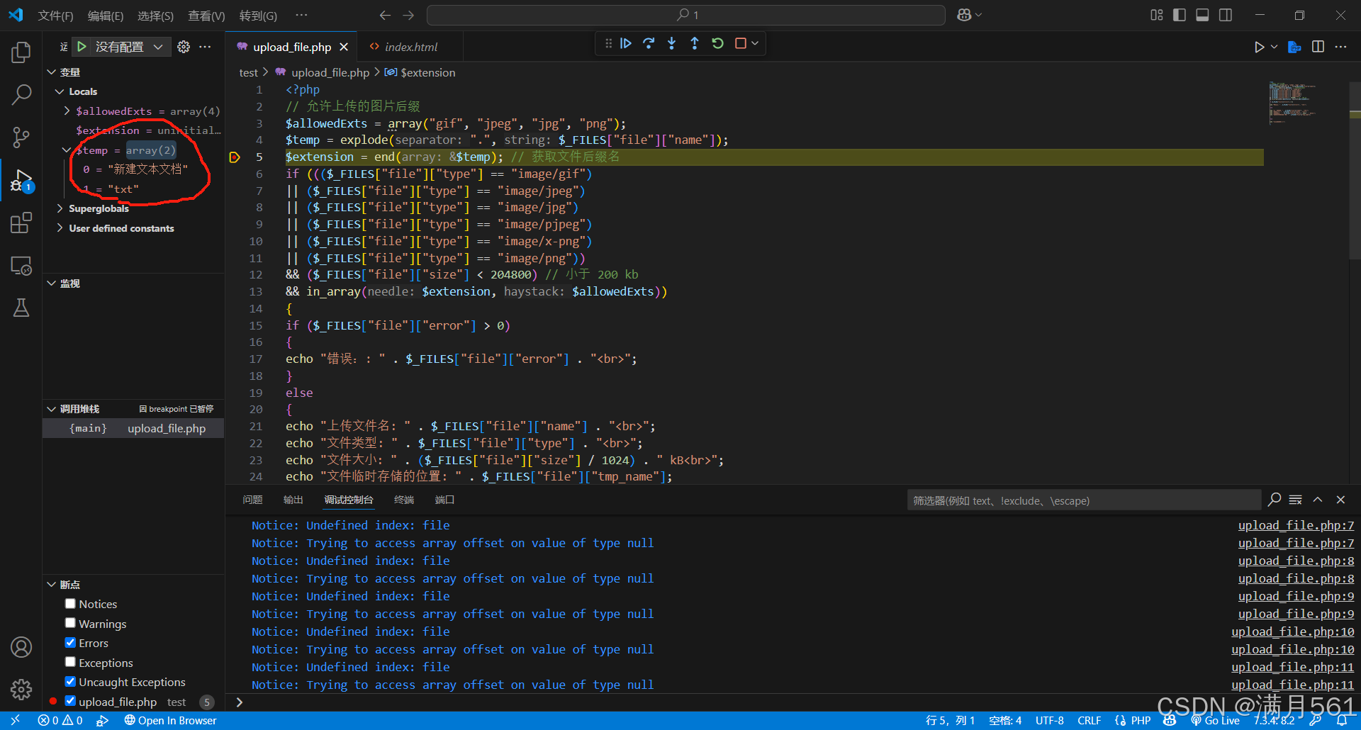 在文件上传校验处下一断点,通过对文件上传,当停到断点处时,可以看到参数发生了变化