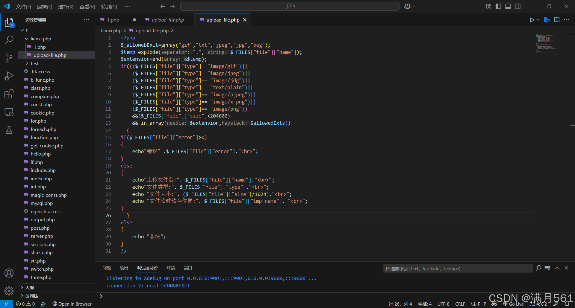 编写接收的文件upload-file.php,通过函数explode将文件分为名称和后缀,利用end函数拿到后缀,再通过创建的后缀组对后缀进行过滤,最后进行比对,已经限制文件大小,从而对文件上传进行过滤