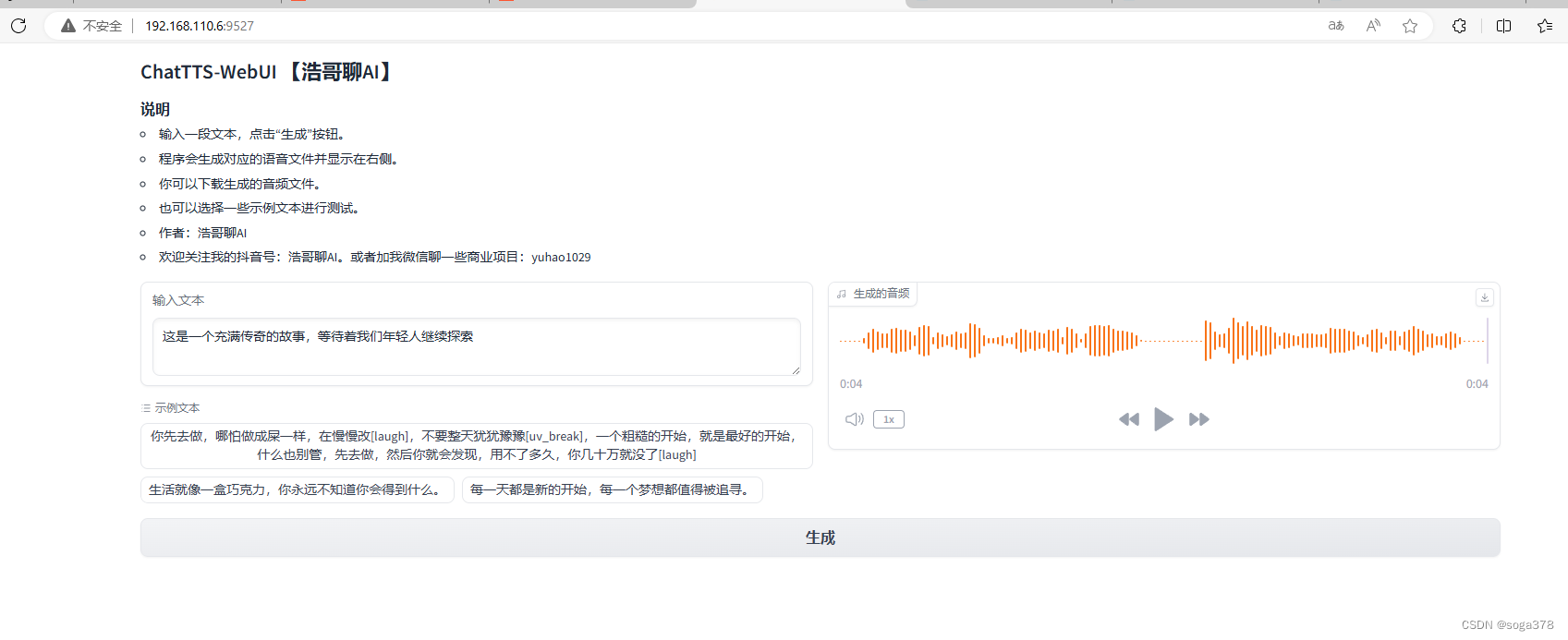docker-compose安装声音克隆ai软件 gpt-sovits 最近发现了一个超好玩又免费的声音克隆软件,如果你的音频源纯净的话,声音相似度能达到百分之99%,可惜需要有显卡,网上的一般都是pc版安装教程,而我一直不喜欢在pc机上安装什么环境,所以今天特地来分享这篇超简单的linux版docker-compose一键式安装gpt-sovits需求:1. GPU2. docker环境及docker-compose(支持显卡,具体教程百度下ji)3. python3.9环境(网上教程一大堆)4. 魔法魔法魔法!