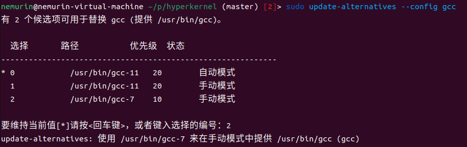 sudo update-alternatives --config gcc