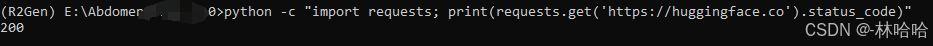 python -c "import requests; print(requests.get('https://huggingface.co').status_code)"