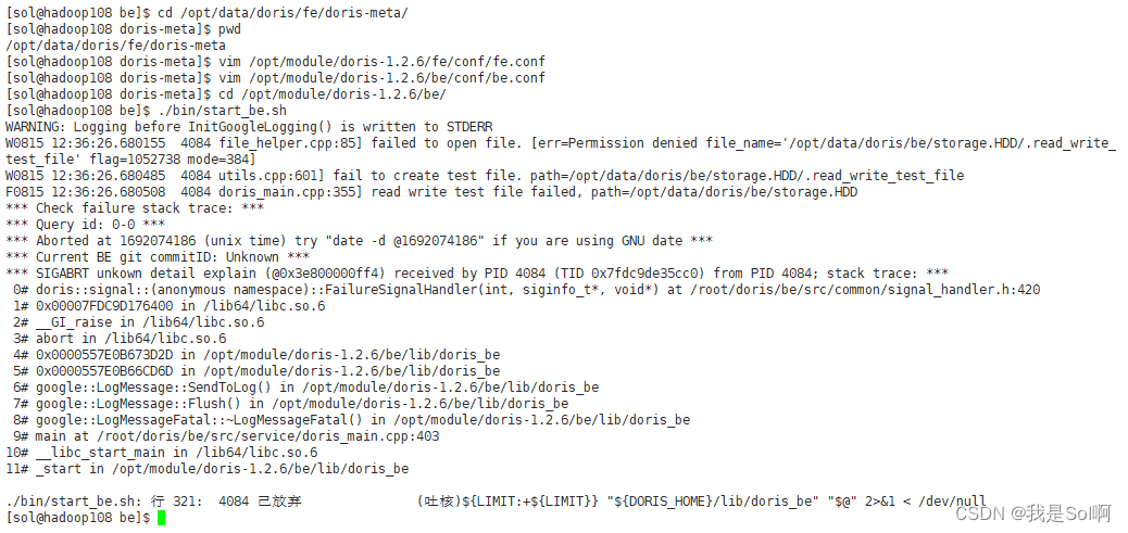 Doris be启动失败 * soft nofile 65536* hard nofile 65536* soft nproc 65536* hard nproc 65536vim /etc/sysctl.conf在文件最后一行添加 vm.max_map_count=2000000让他永久生效 sysctl -p检查是否生效 sysctl -a|grep vm.max_map_count