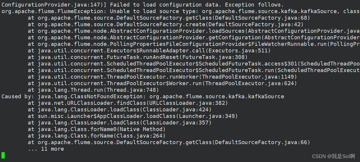Caused by: java.lang.ClassNotFoundException: org.apache.flume.source.kafka.kafkaSource 问题:用flume从kafka往hdfs写数据的时候,找不到这个类,最后发现从flume官网复制kafkasource的时候大写字母不知道咋回事变成小写的了解决方案:将kafkaSource 改为大写的 KafkaSource