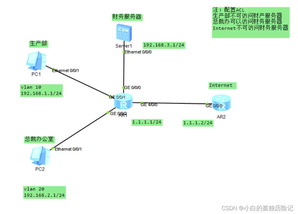 本文详细介绍了一种路由器的访问控制列表(ACL)配置方法,包括全网通配置、具体ACL规则定义及应用步骤,并验证了配置的有效性。通过配置,实现了不同部门间的网络访问控制。