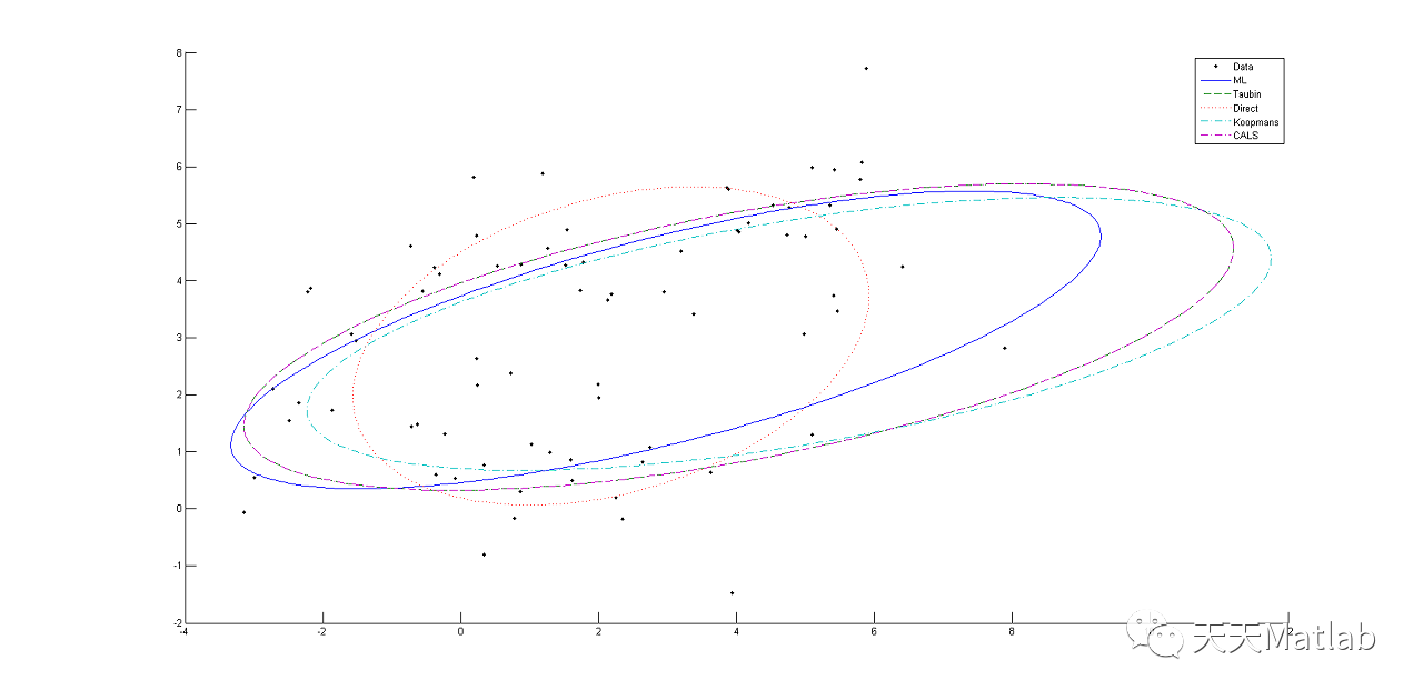 本文详细介绍了如何使用Matlab进行物理量函数关系的曲线拟合,包括最小二乘原理的应用,提供了一个椭圆参数从隐式到显式的转换函数,并通过实例展示了不同拟合方法的结果对比。