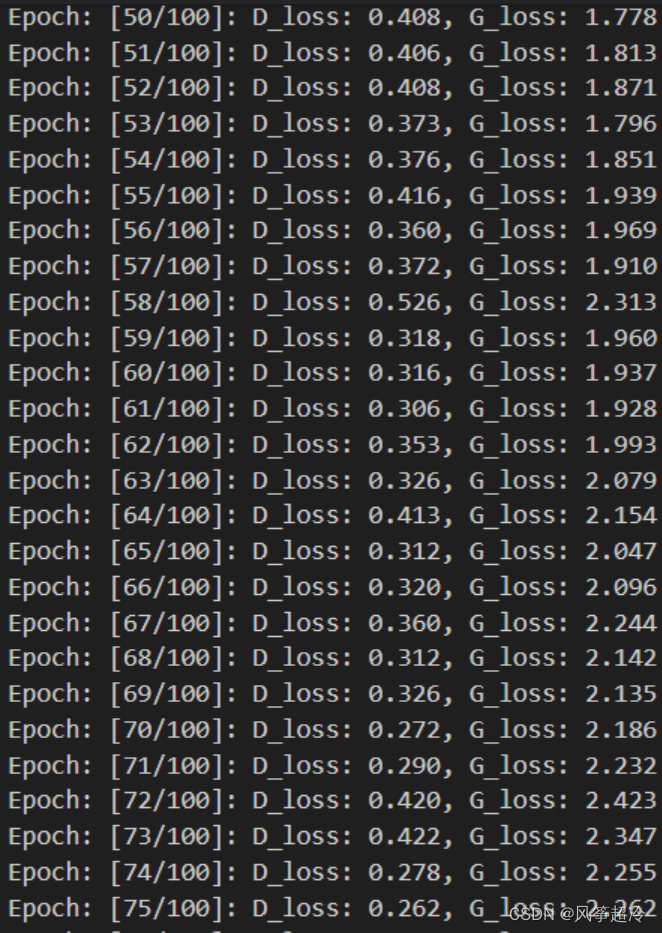 # 将当前轮次的判别器和生成器的平均损失保存到列表中
