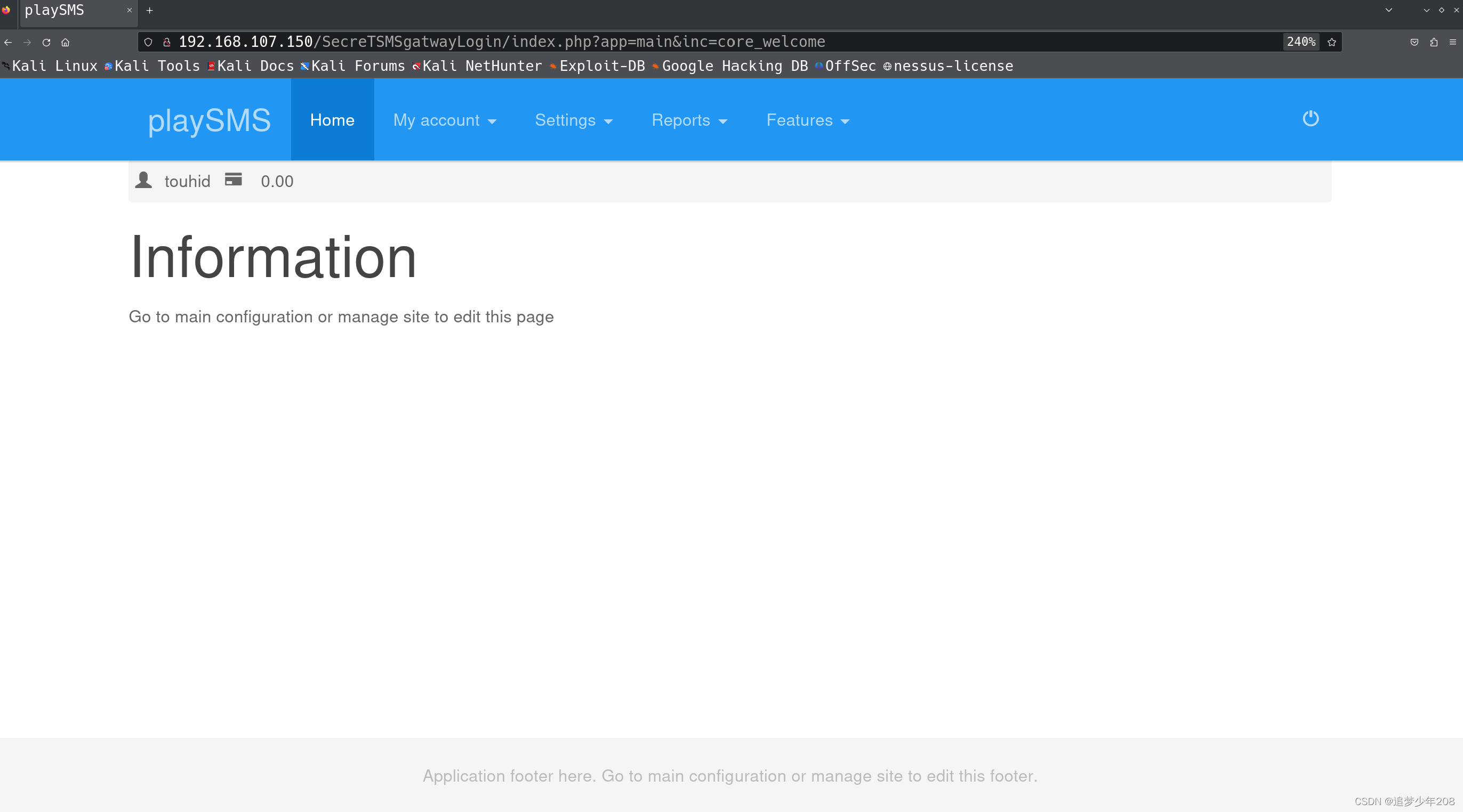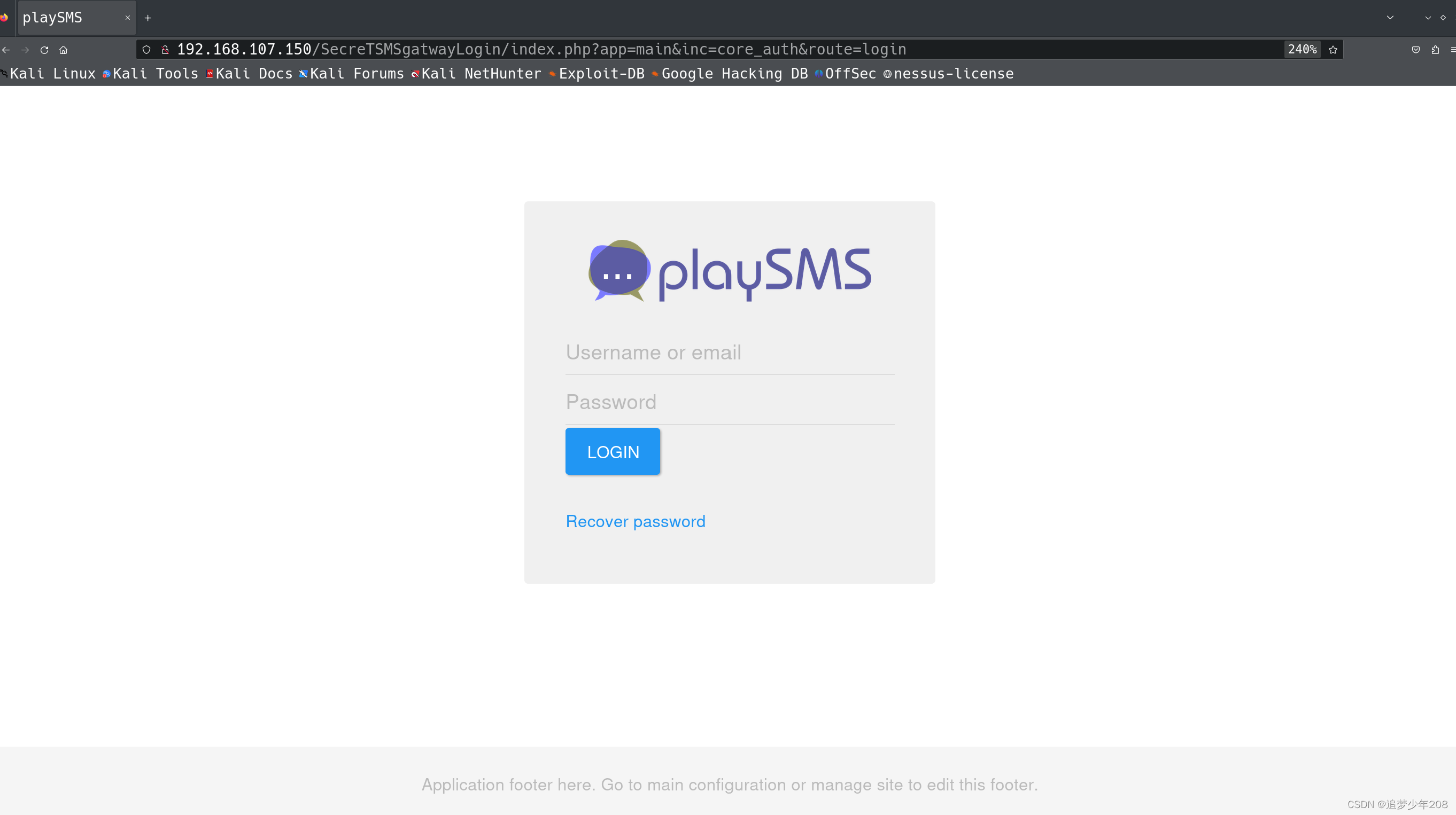 既然是playsms,那就使用MSF搜一下看看有没有什么漏洞吧(如果你很牛逼的话可以试试任意文件上传拿下shell)
