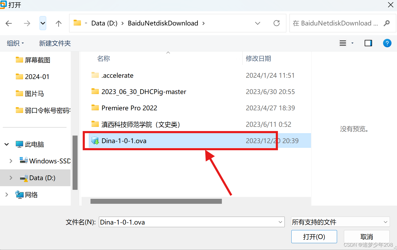 在打开界面,找到刚才下载好的ova格式虚拟机文件