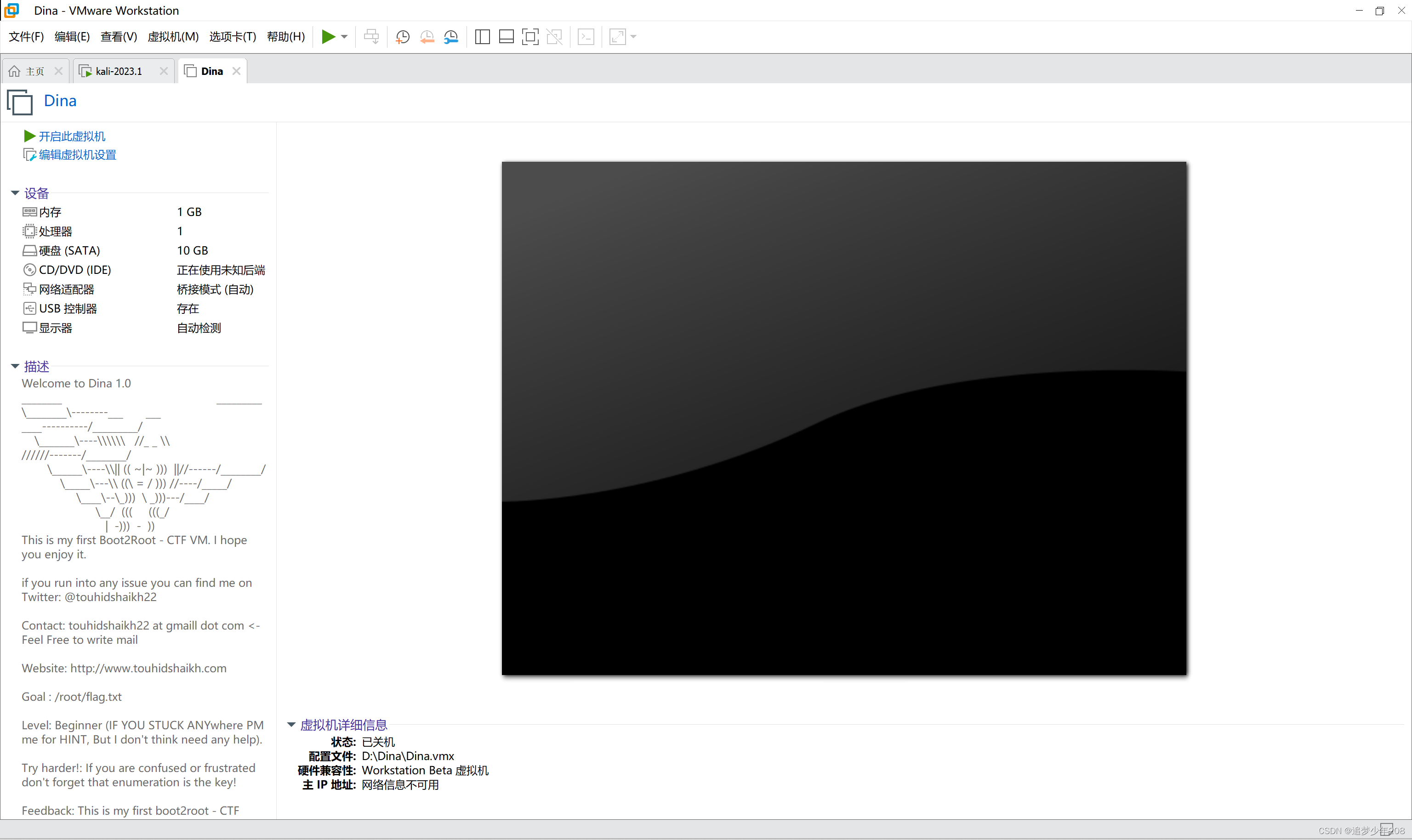 Dina靶场环境详情页面:Dina: 1.0.1 ~ VulnHub