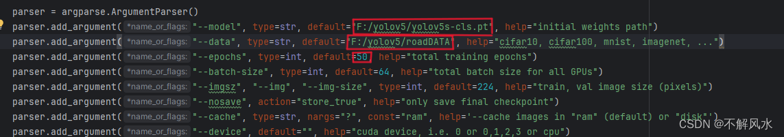 修改这三个地方,改为自己存放分类模型的位置,存放数据集的位置,训练轮数