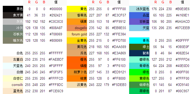 可以根据RGB常用颜色表 将标签修改为自己想要的颜色: